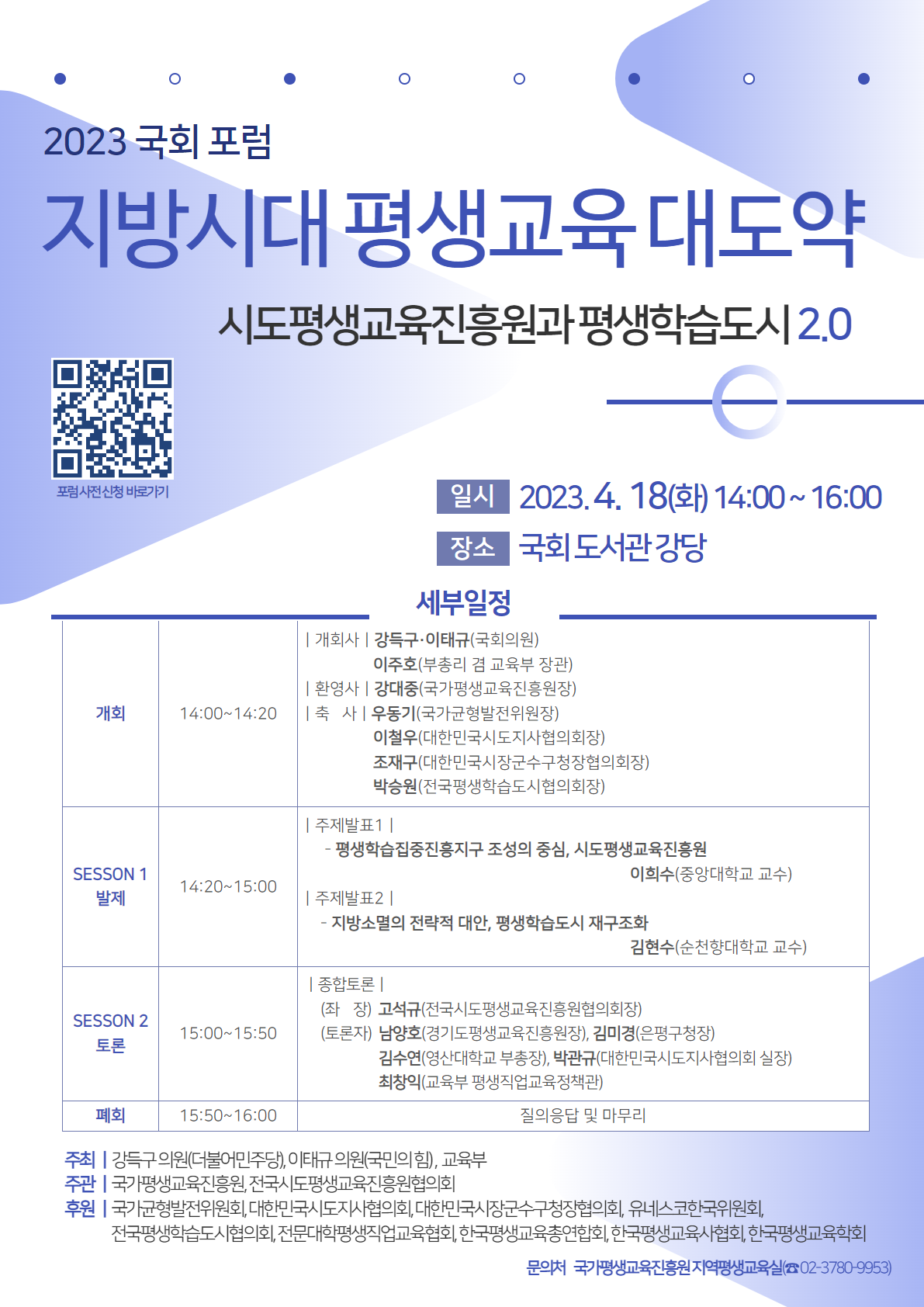 2023 국회포럼 <지방 시대 평생교육 대도약> 참가자 모집