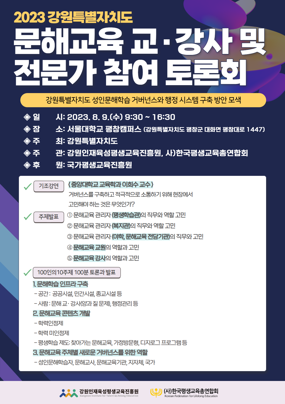 2023 강원특별자치도 문해교육 교,강사 및 전문가 참여 토론회